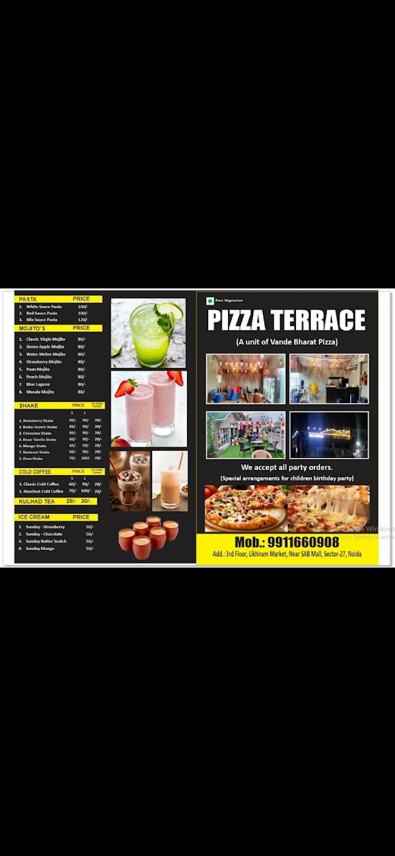Welcome to Pizza Terrace Cafe, a delightful unit of Vande Bharat Pizza, nestled in Noida Sector 18. This open terrace cafe offers not just a meal but an unforgettable experience. Picture indulging in a variety of fresh and hygienic pizzas alongside refreshing mocktails, all at pocket-friendly prices.